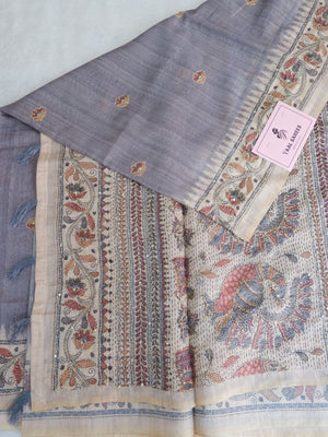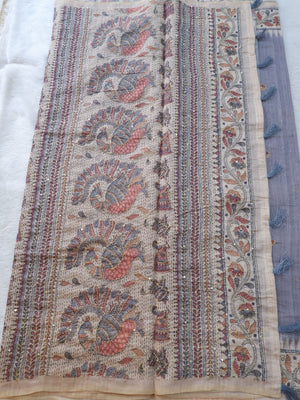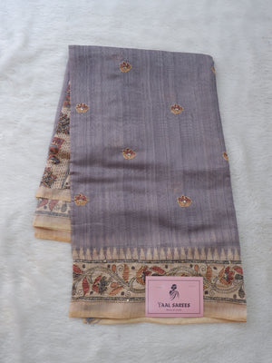 Colour : This Saree has ash Body With Sandal Kantha border and a grand pallu.