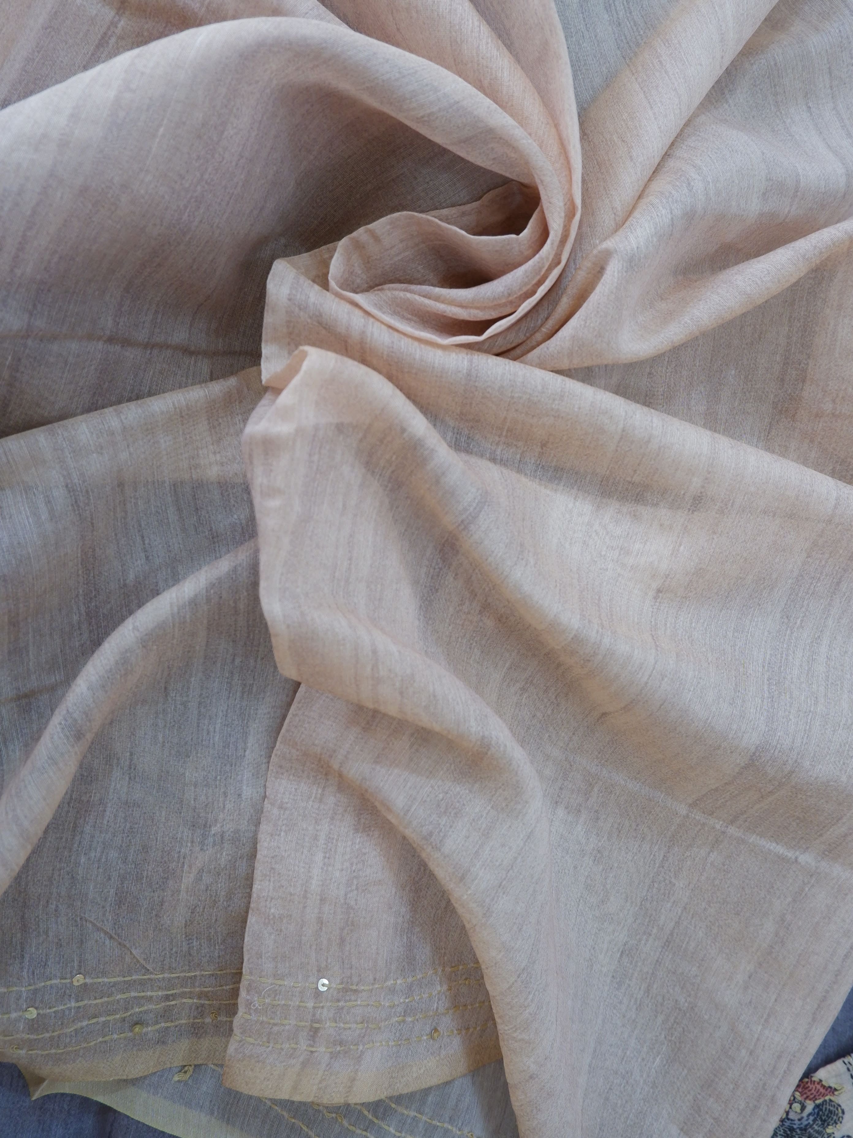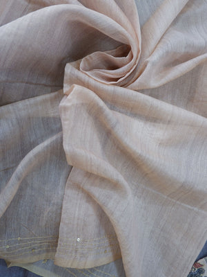 Ash Colour Chanderi Cotton Saree with Kantha Work & Sandal Colour Blouse | Elegant Festive Wear