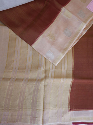 Garuda Berunda Tissue Saree with Brown Body & sandal Border | Elegant Festive Wear Saree