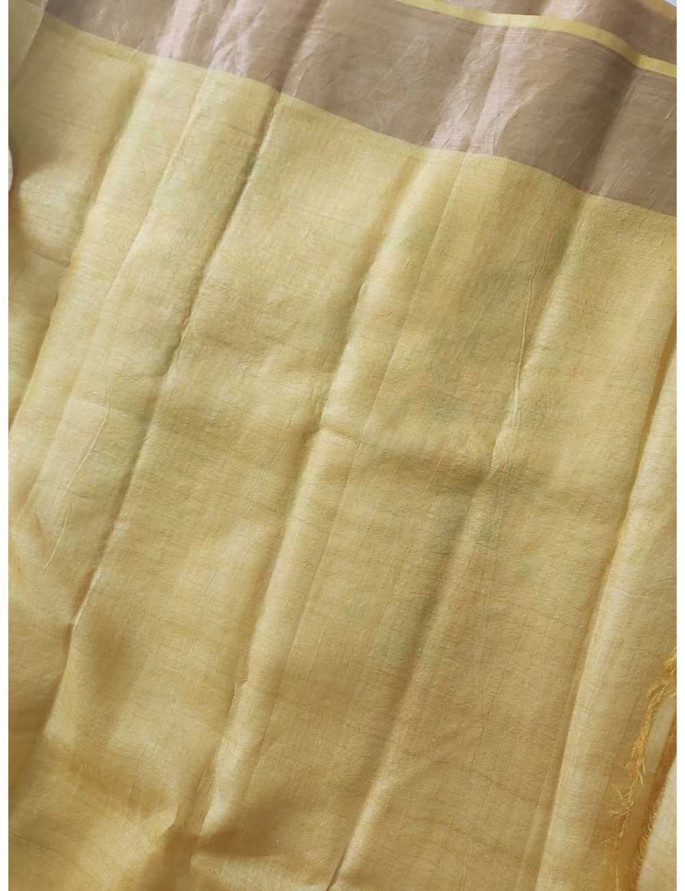 Colour : This Saree has a peach body with hand block print and yellow zari border.