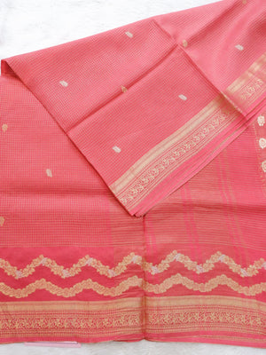 Red Cora Checks Saree with Gold Butties & Border | Elegant Festive Wear Saree