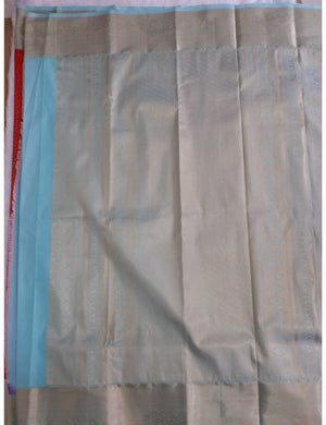 Red & Mint Blue Semi Silk Saree