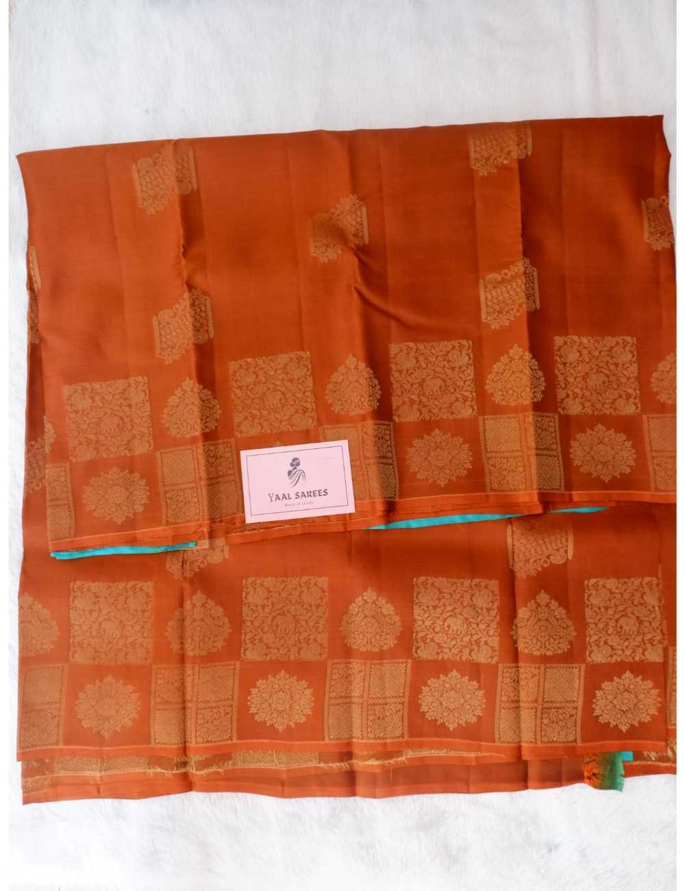 Colour : This Saree has a rust body with a grand pallu.
