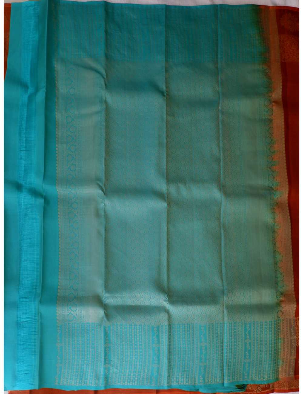 Rust & Rama Green Pure Silk Saree