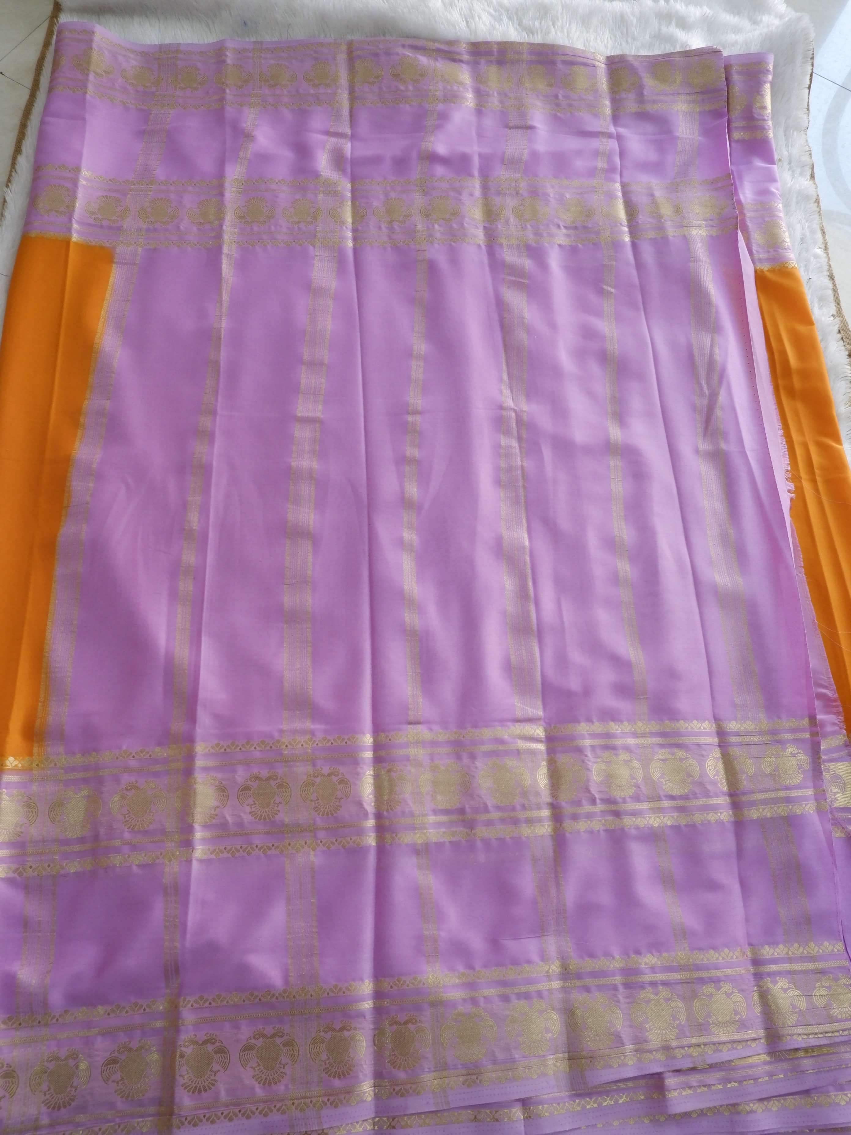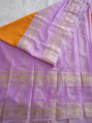 Semi Mysore Silk Saree in Mustard with Lavender Blouse