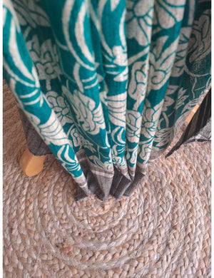 Teal Green Ghicha Tassar Silk Saree with Floral Prints