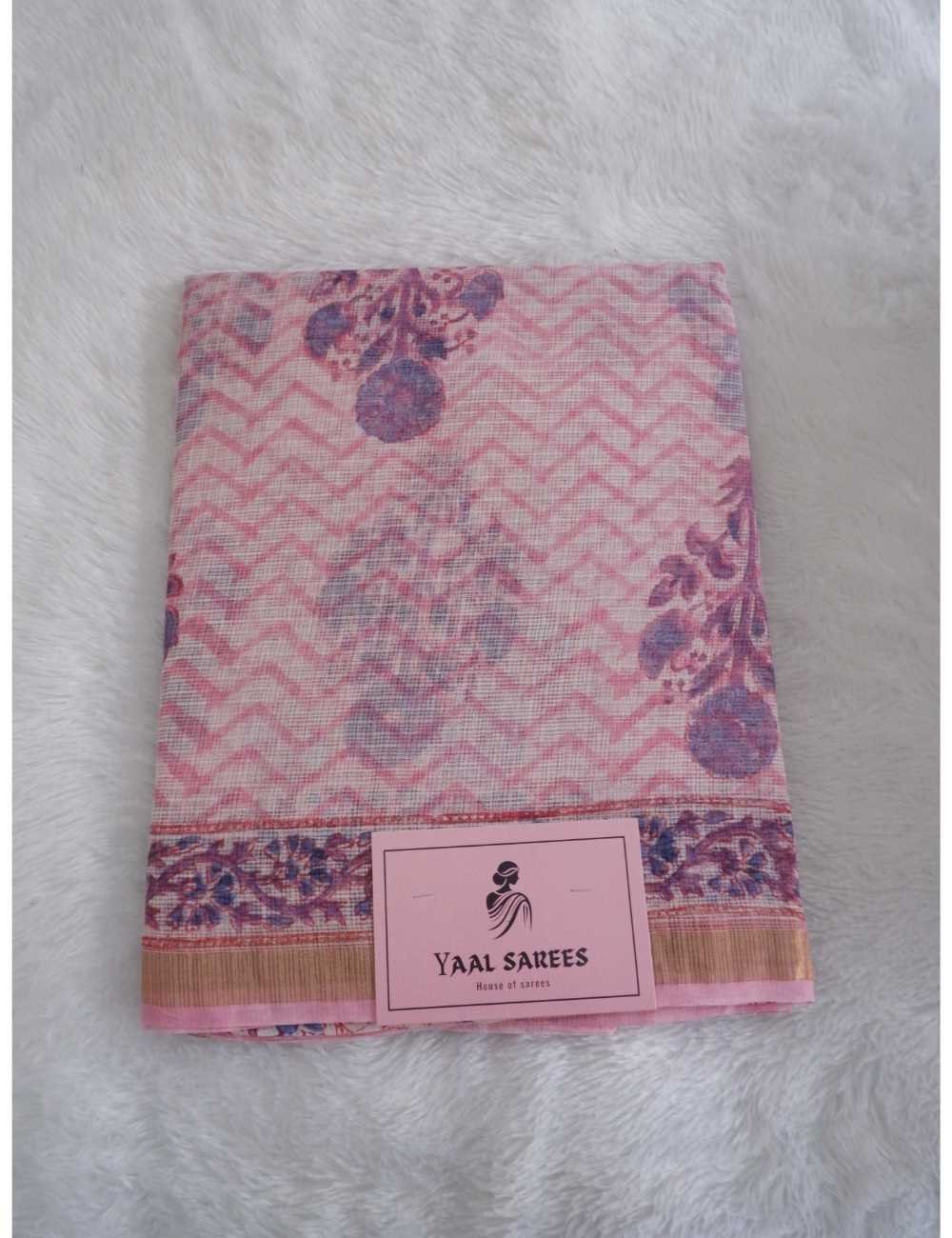 Mangalgiri with Digital Print in Sandal with Pink Border
