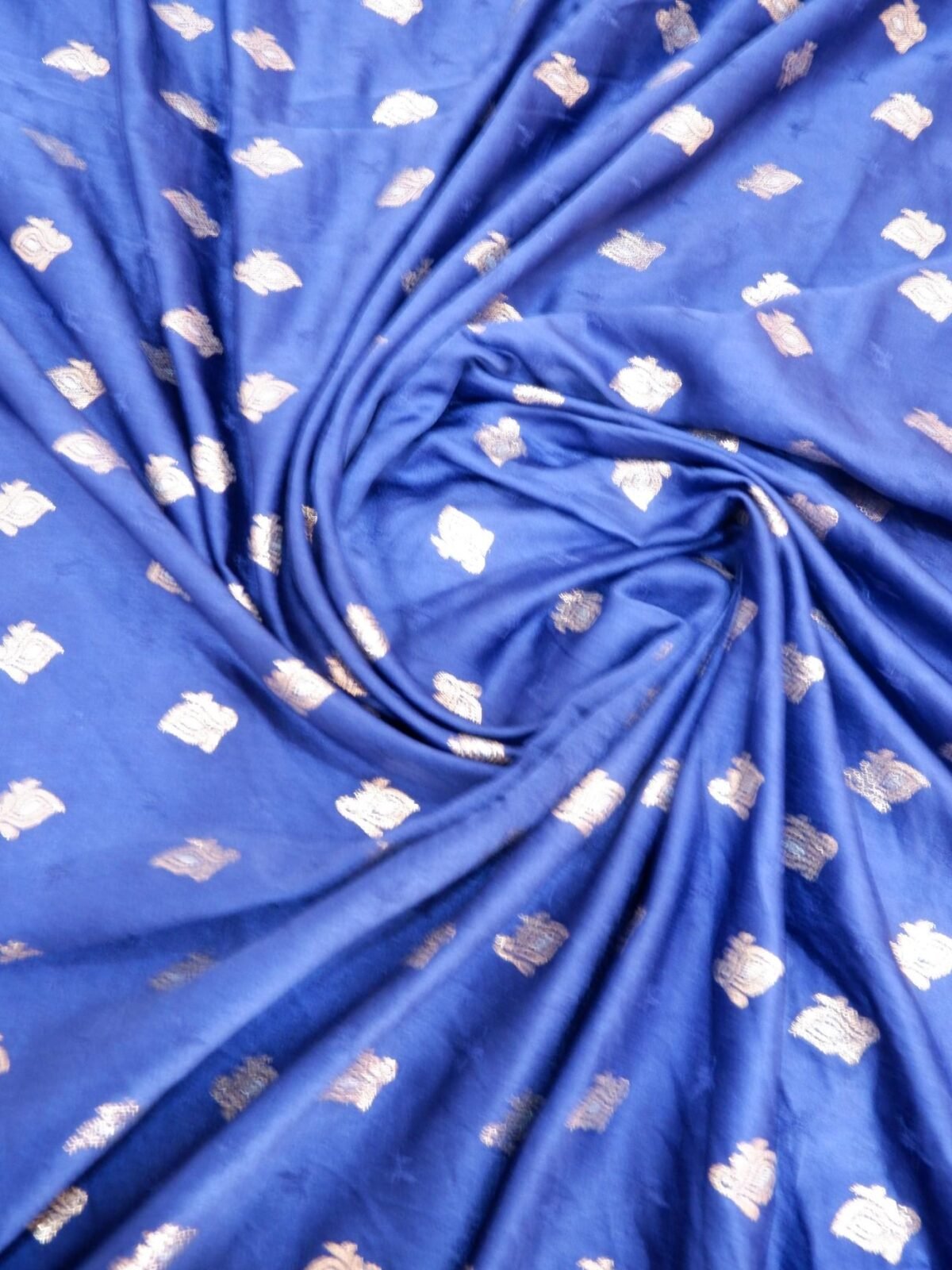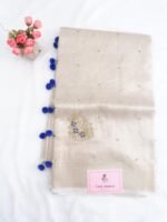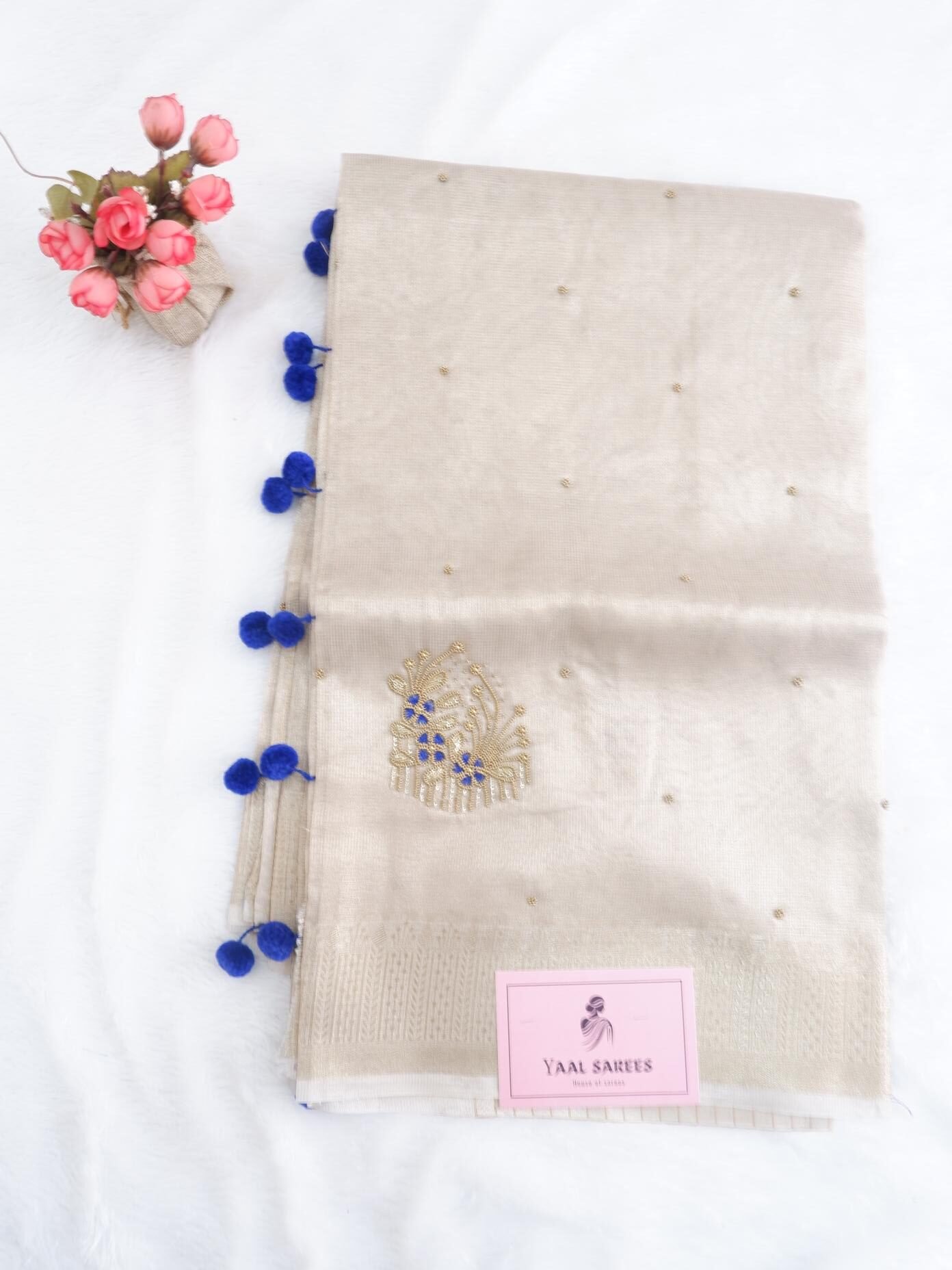 Beige & Royal Blue Tissue Saree with Hand Embroidery