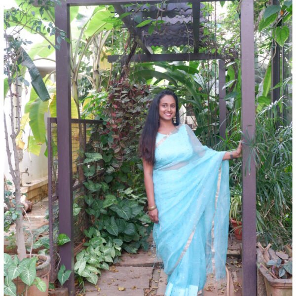 Muslin Saree with Sequence Weaving Aqua Blue Original price was: ₹6,500.00.Current price is: ₹5,499.00.