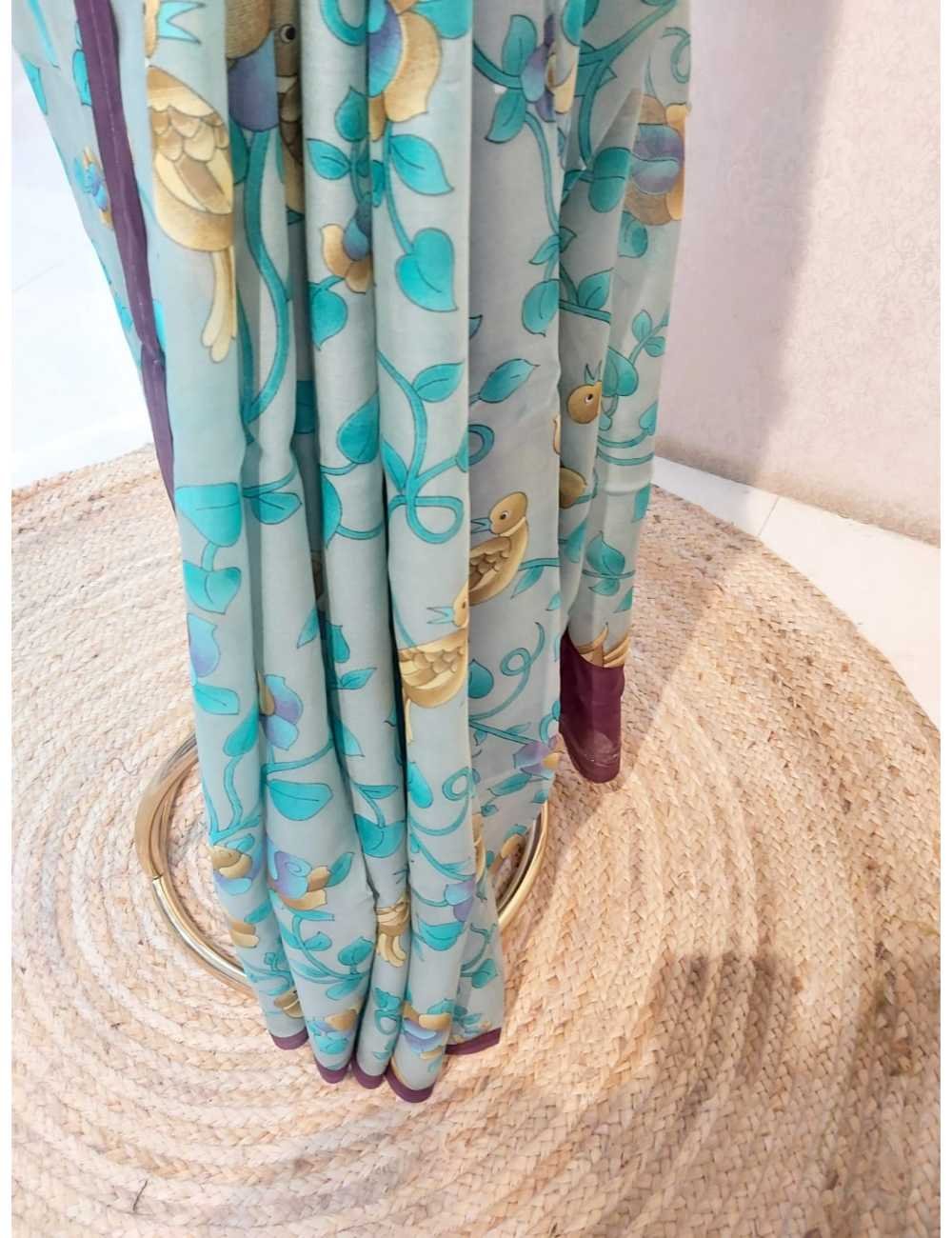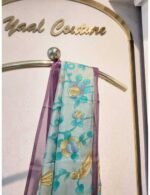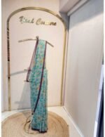 Crepe Organza in Teal Grey And Violet Border
