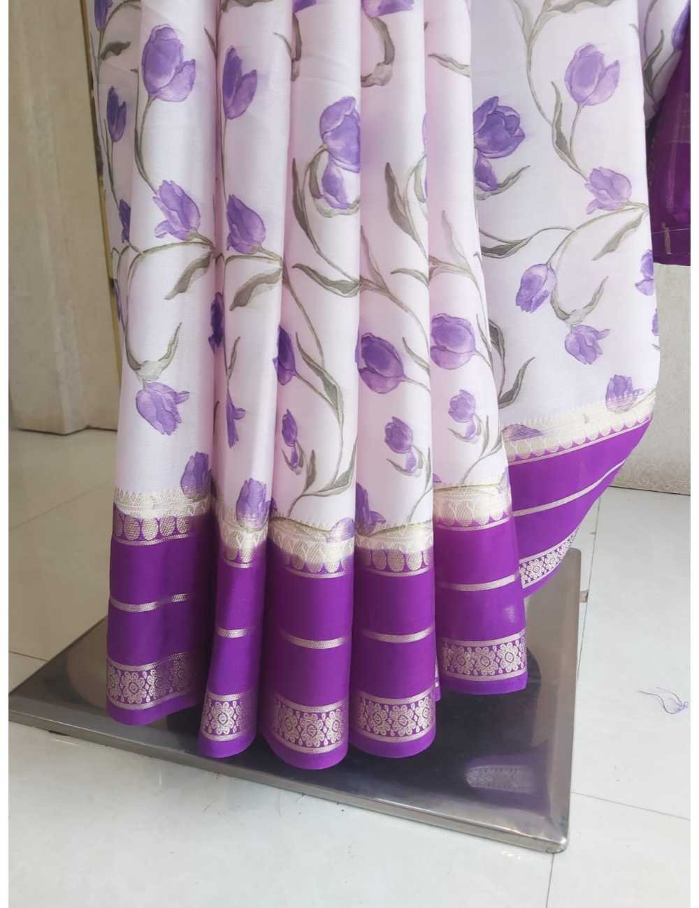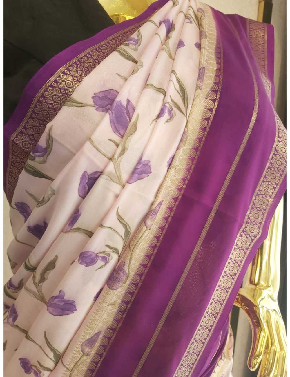 Crepe Silk Saree With Bentex Border Light Lavender And Violet