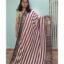 Colour :It Is a Dola silk saree with orange border. The body has black and white stripes throughout and has a grand pallu.
