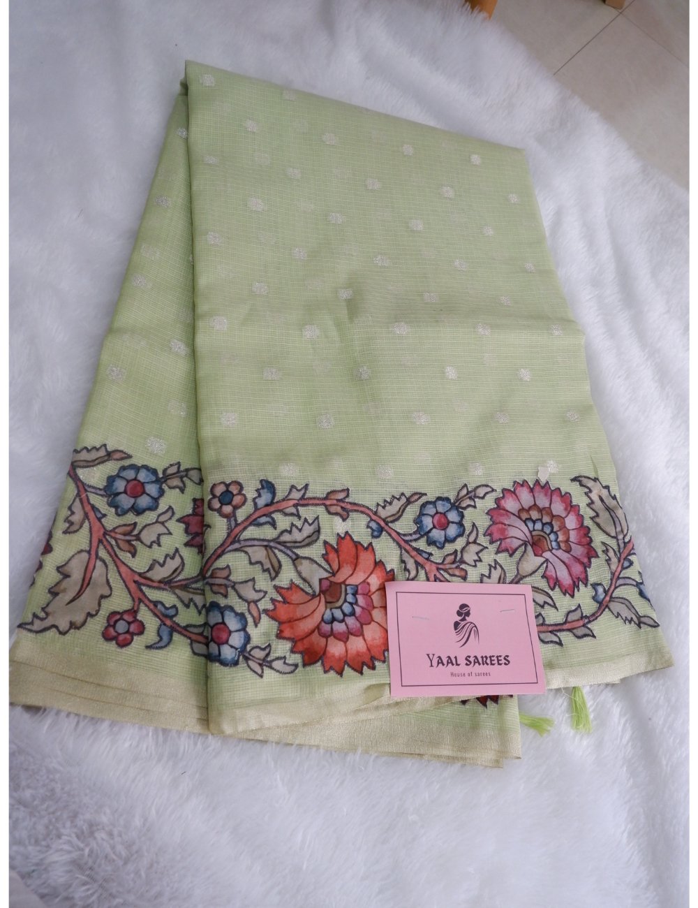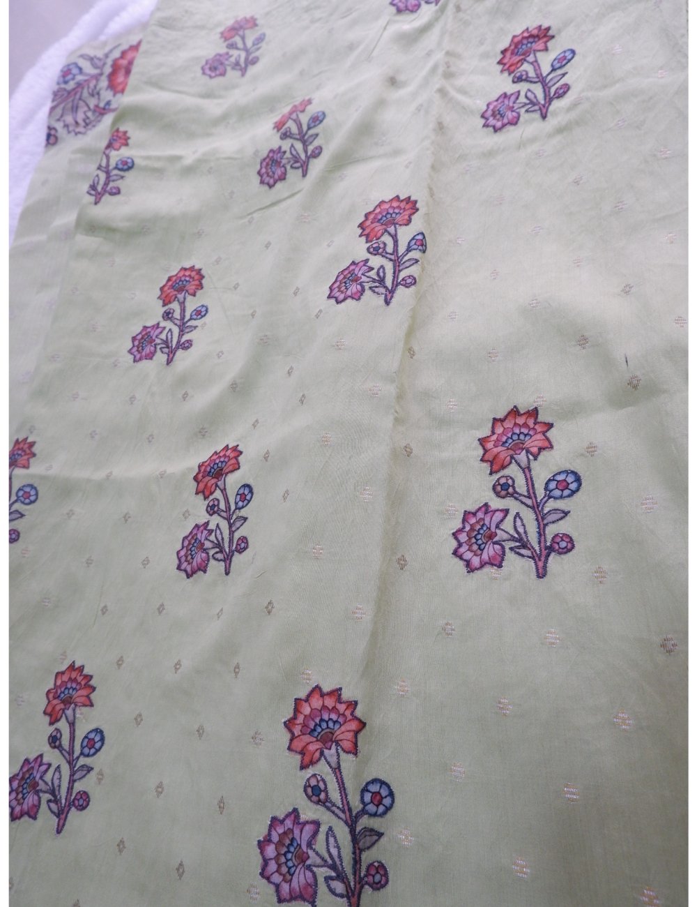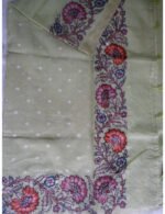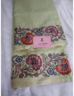 Colour  : This Saree has a peach green body with a applique work border and a grand pallu.