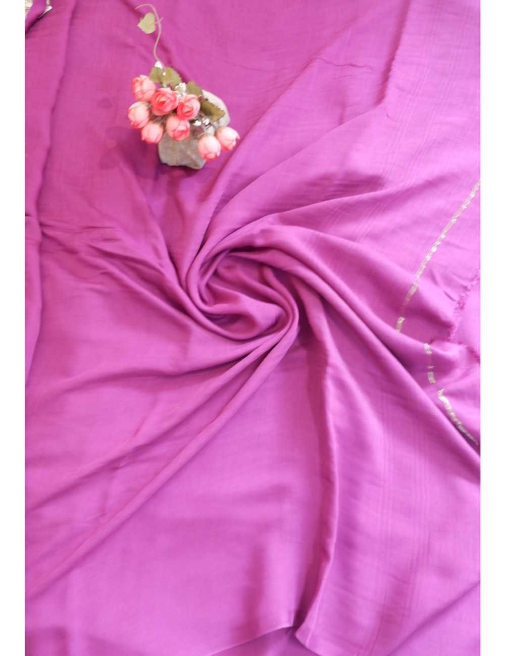 Elegant and effortlessly stylish, this plain purple modal saree features a soft, flowy drape with a natural sheen—perfect for both casual and semi-formal occasions.