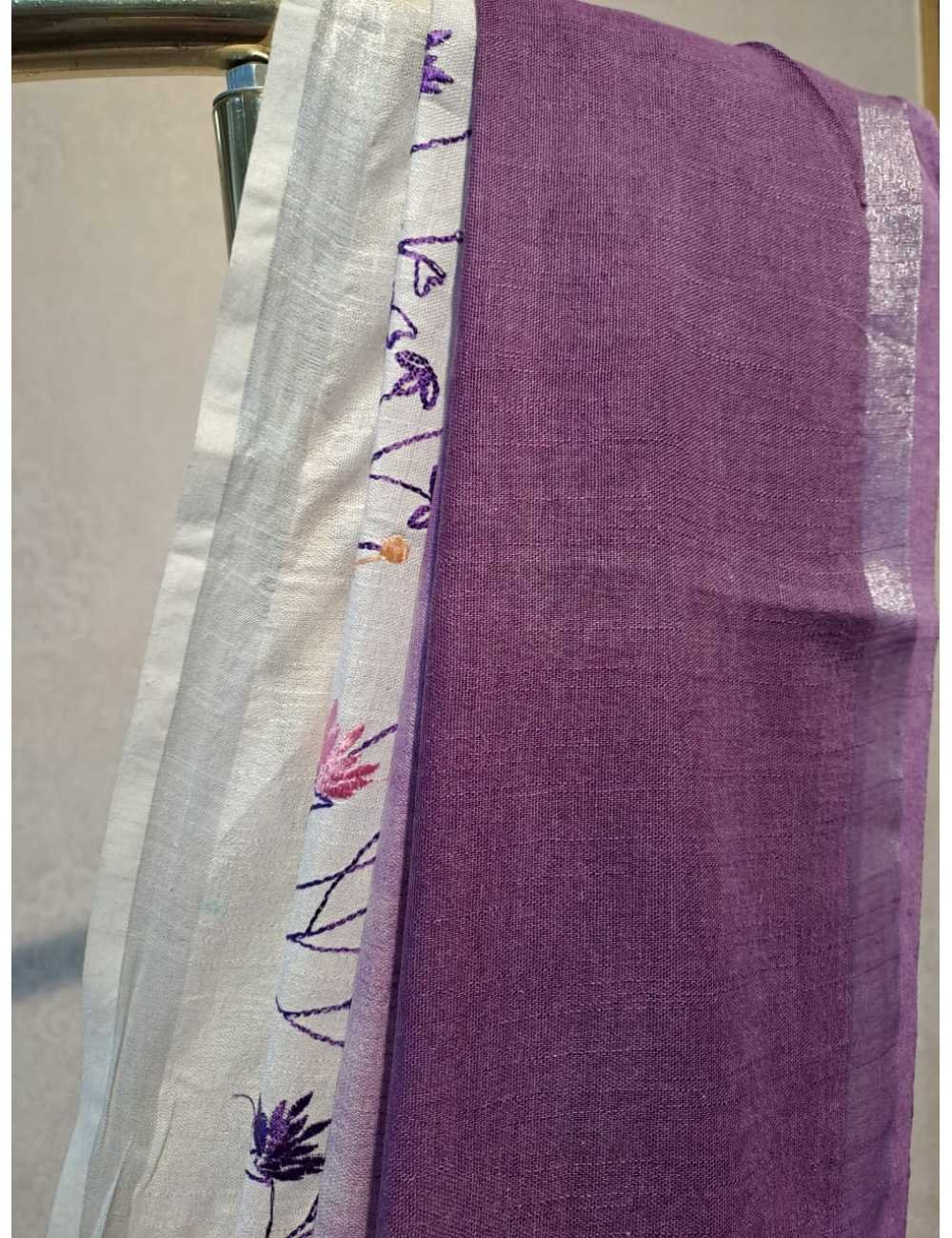 Elegant ombre linen saree enhanced with delicate thread embroidery, offering a graceful blend of subtle style and artisanal detail. Perfect for refined daywear or special gatherings.
