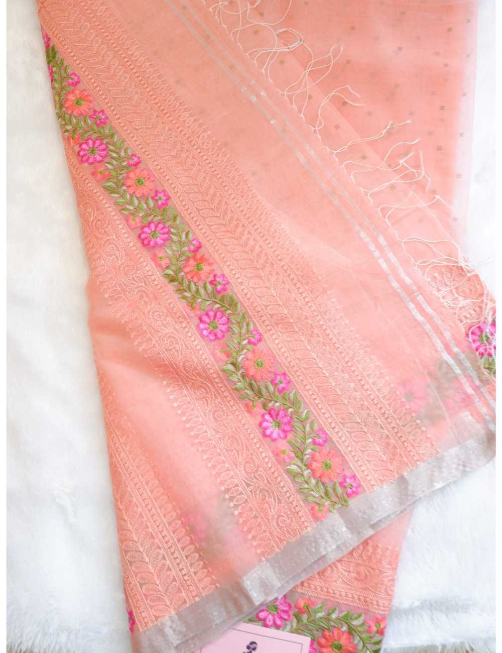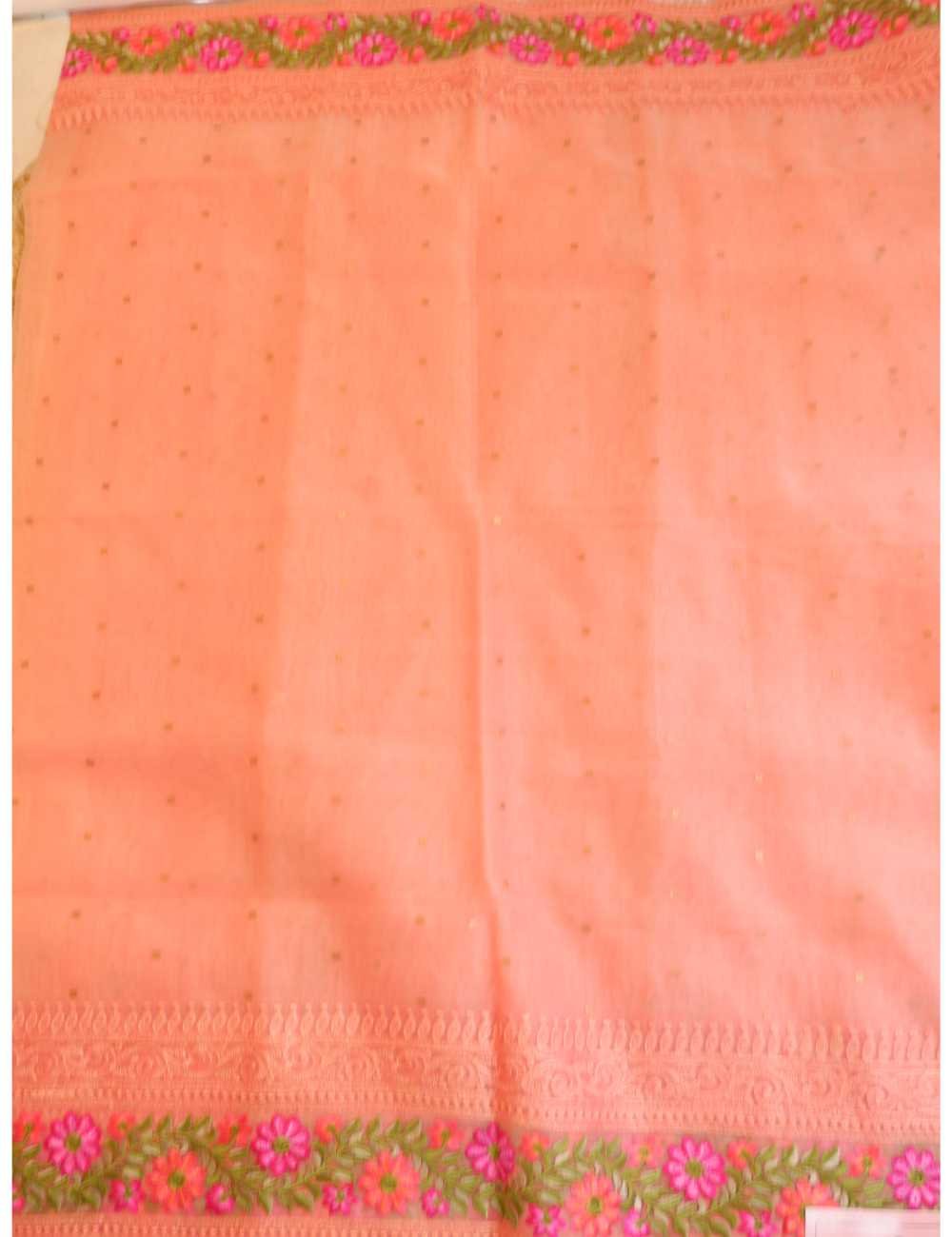 Grace meets glamour in this Peach Orange Muslin Saree, featuring delicate sequin weaving and intricate embroidery. Lightweight and elegant, it’s perfect for festive occasions, parties, or special celebrations.