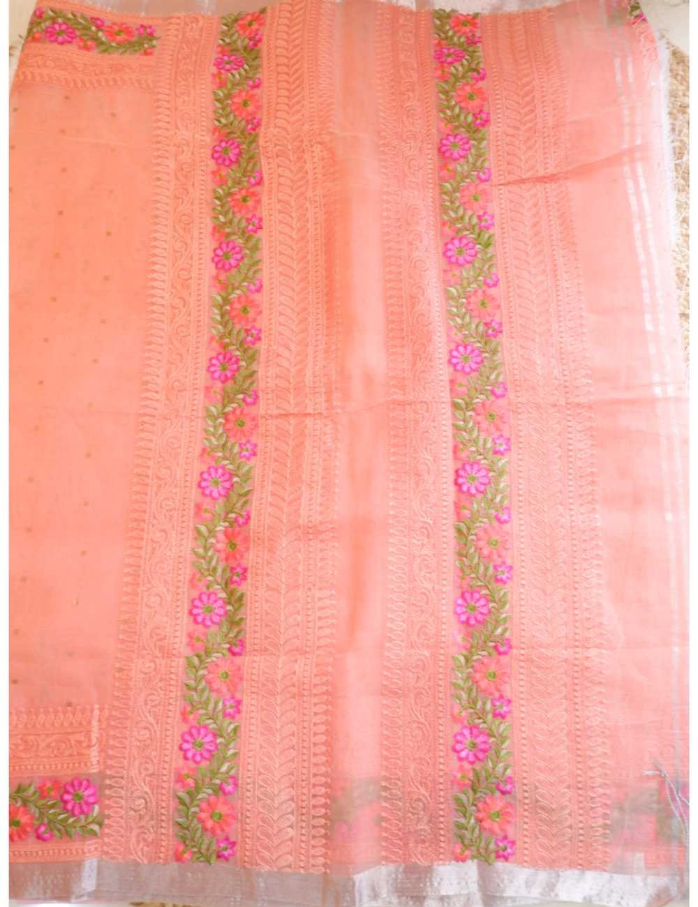 Colour  : This Saree has a peach orange body with a small silver boarder and a grand pallu.