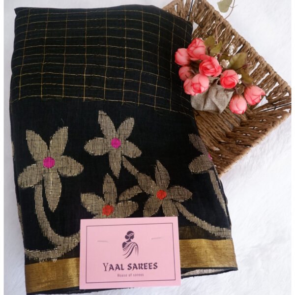 Black Linen Saree with Jamdhani Weaving Original price was: ₹4,000.00.Current price is: ₹2,699.00.